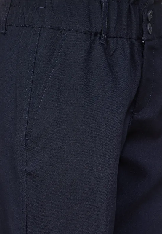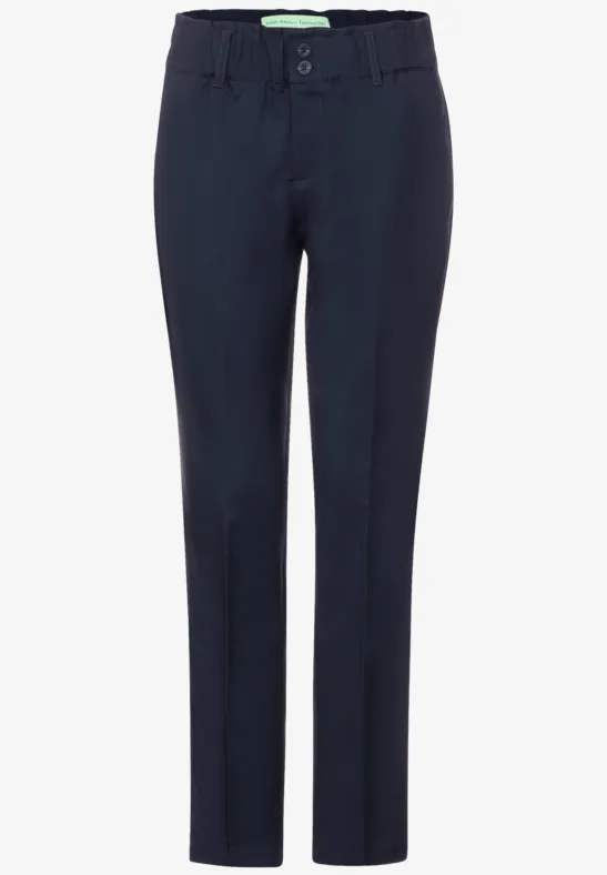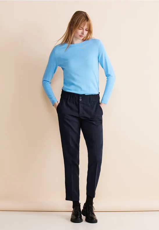 Street One loose fit damesbroek, middelhoge taille, strakke pijpen, joggingbroek, keperstof, paperbag