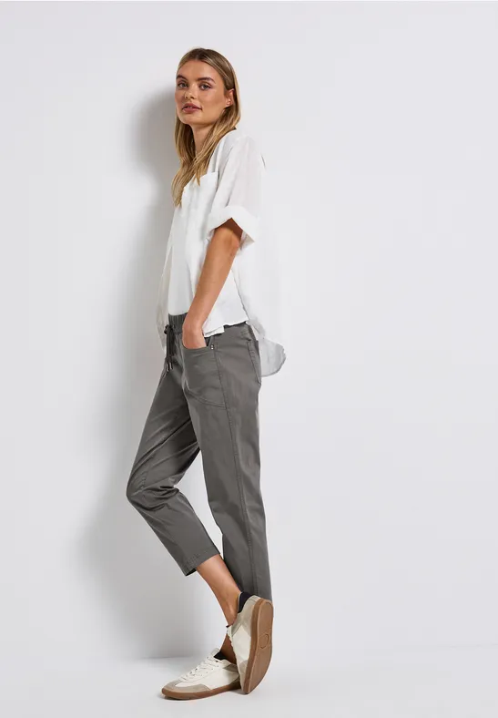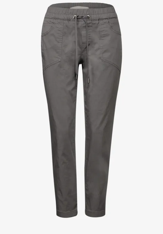Met zijn casual snit en Stretch tailleband met trekkoord biedt deze damesbroek van Street One in de stijl Bonny ontspannen comfort. Slim Legs en een Mid Waist zorgen voor een moderne pasvorm, terwijl de katoenmix met stretch maximale bewegingsvrijheid biedt. Zijzakken ronden het ontwerp af.