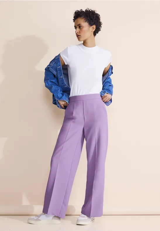 Street One Dames Loose fit broek van keperstof in Paars, in size: 38