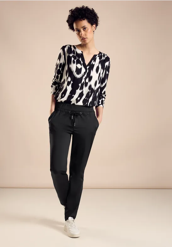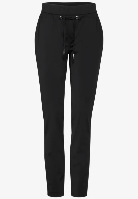 Street One reisbroek in loose fit, comfortabele joggingbroek, middelhoge taille met strakke pijpen, elastische band, trekkoord en steekzakken, hoog percentage stretch, onderhoudsvriendelijk en kreukvrij