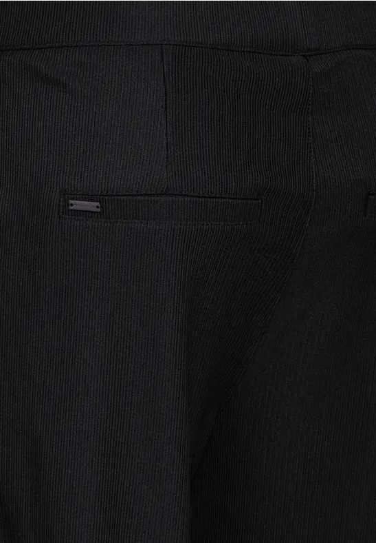Street One damesbroek loose fit, broek met geribde structuur, middellange taille met slanke pijpen, tailleband met trekkoord, zijzakken met split, materiaalmix met stretchgehalte