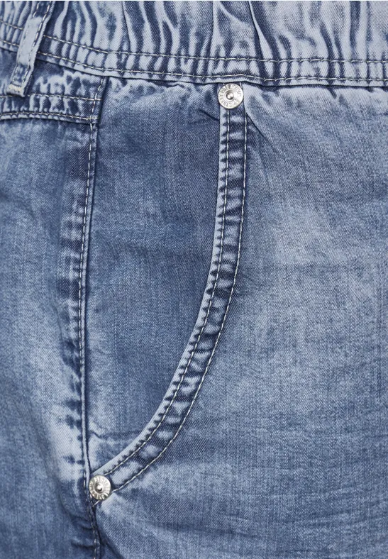 Street One comfortabele jeansshort, korte jeansbroek in een Loose fit, lyocell, hoge taille, elastische tailleband en trekkoord, casual door de zomer
