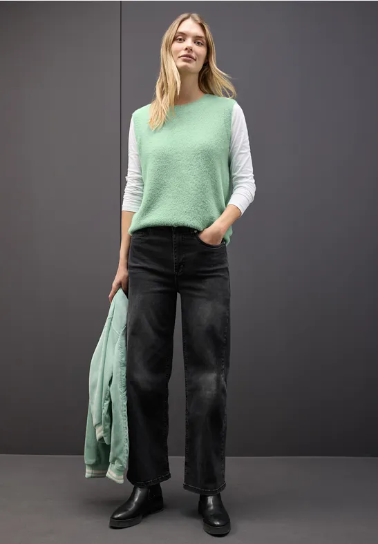 Deze mouwloze trui van Street One voor dames is de perfecte aanvulling op je laagjeslook. De zachte stof van verengaren maakt hem bijzonder behaaglijk om te dragen, terwijl de ronde halslijn en het effen ontwerp hem veelzijdig maken. Ideaal over blouses of shirts met lange mouwen.