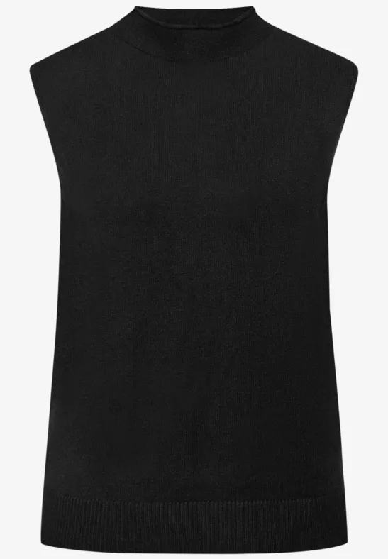 De mouwloze gebreide trui van Street One voor dames is ideaal voor trendy layering-looks. Met een opstaande kraag en opgerolde rand en splitjes aan de zijkanten ziet hij er modern en knus tegelijk uit. Zowel over blouses als over shirts met lange mouwen te dragen - een stijlvolle must-have voor overgangslooks.