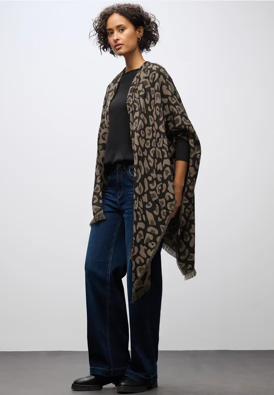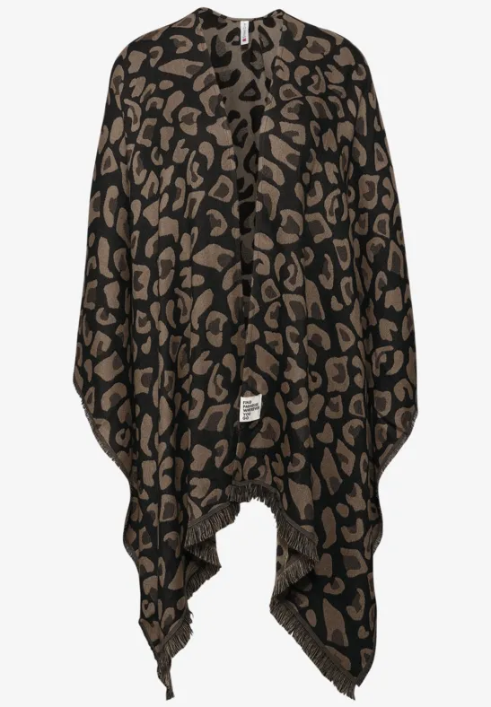 De omkeerbare cape van Street One voor dames combineert functionaliteit met fashion flair. De leo-kant zorgt voor een wilde look, terwijl de effen kant voor klassieke elegantie zorgt - afhankelijk van de styling. Franjes en de zachte stof maken deze poncho tot een knusse en veelzijdige metgezel.