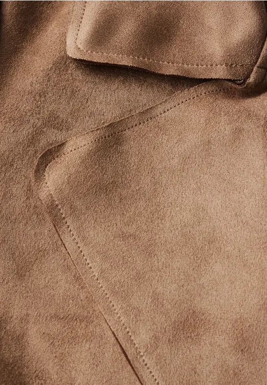 Street One Dames Open fluwelen trenchcoat in Bruin, in size: 42