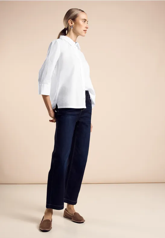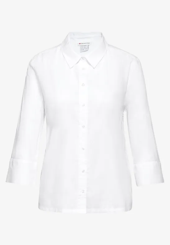 Street One dameshemdblouse, katoenen blouse, kraag van hemdblouse, 3/4 mouwen met manchetten, zachte viscose, licht en comfortabel