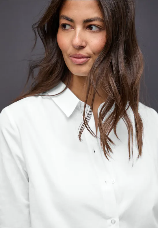Een klassieker voor elke gelegenheid: de Street One overhemdblouse voor dames is gemaakt van puur katoen en heeft een overhemdkraag, knoopsluiting en lange mouwen met manchetten en knopen. Ideaal voor kantoor, vrije tijd en alledaagse stijlen.