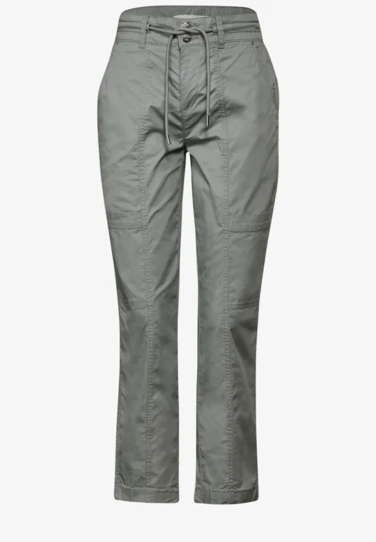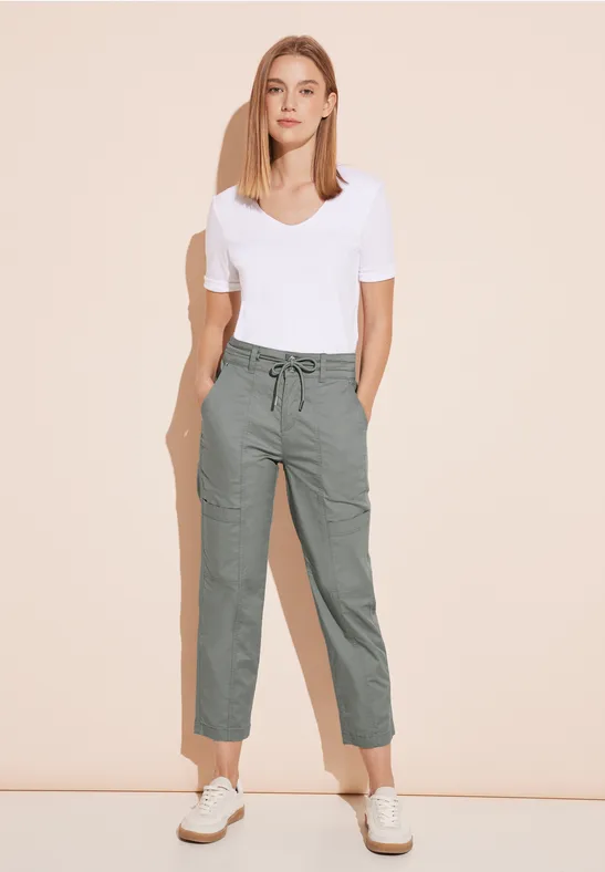 Street One papertouch-broek voor dames, cargobroek in loose fit, middelhoge taille met strakke pijpen, elastische band en trekkoord, sportieve allrounder, katoenmix met stretchpercentage