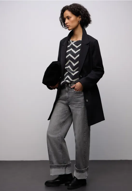 Deze Street One-trui voor dames heeft een modieuze col en opvallende contrasterende details. Het zachte materiaal maakt hem comfortabel om te dragen -...
