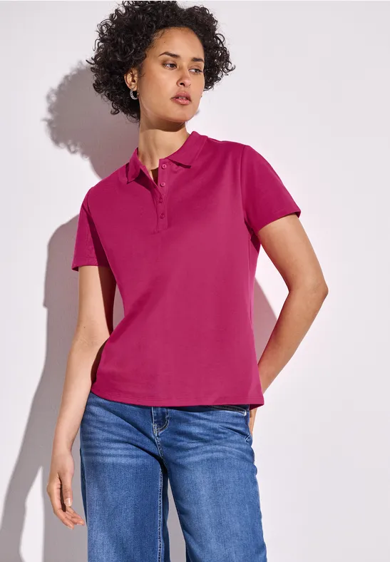Street One Dames Poloshirt met geribde structuur in Pink, in size: 36