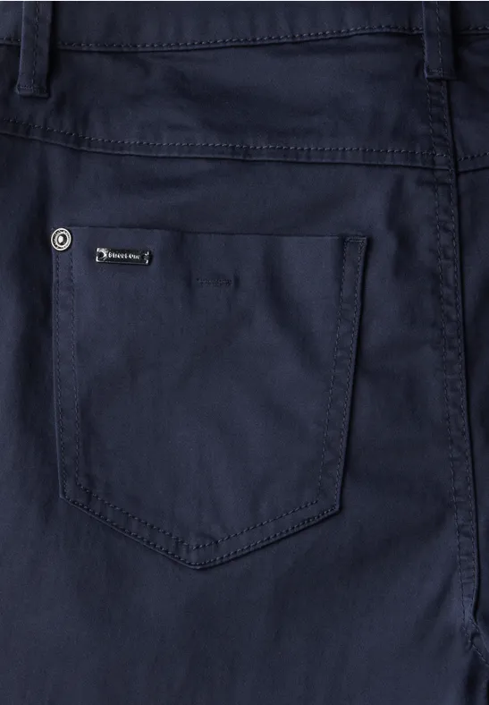 Deze Street One satijnen broek voor dames combineert een casual pasvorm met een geraffineerde glimmende afwerking. De Mid Waist en Slim Legs zorgen voor een moderne pasvorm, terwijl het 4-pocket ontwerp de klassieke look benadrukt. De katoenmix met stretch maakt hem bijzonder comfortabel.