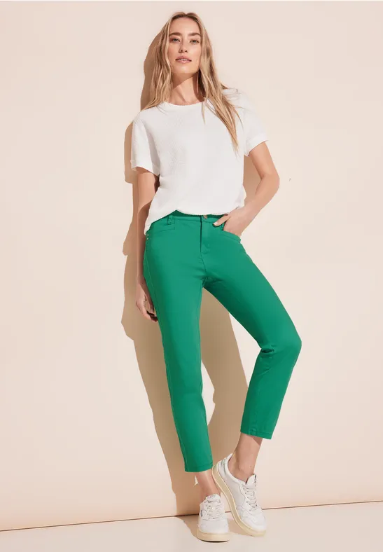 Street One Dames Satijnen 7/8-broek in Groen, in size: 38