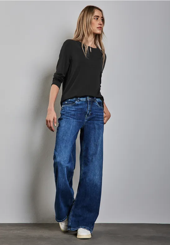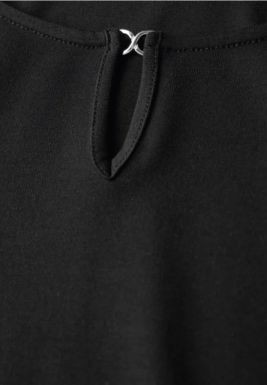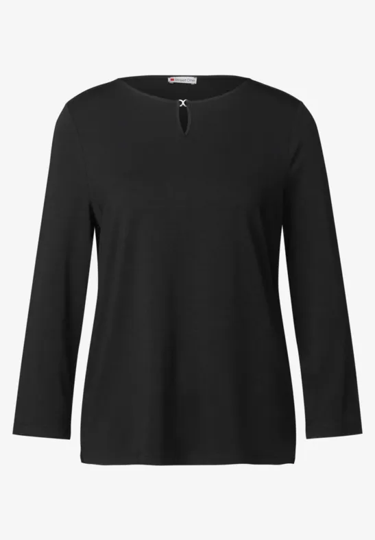 Dit jersey Shirt van Street One voor dames heeft een ronde halslijn met een uitsnede en decoratieve details. De viscosemix met stretch zorgt voor een hoog draagcomfort, terwijl de zijsplitten voor een losse pasvorm zorgen.