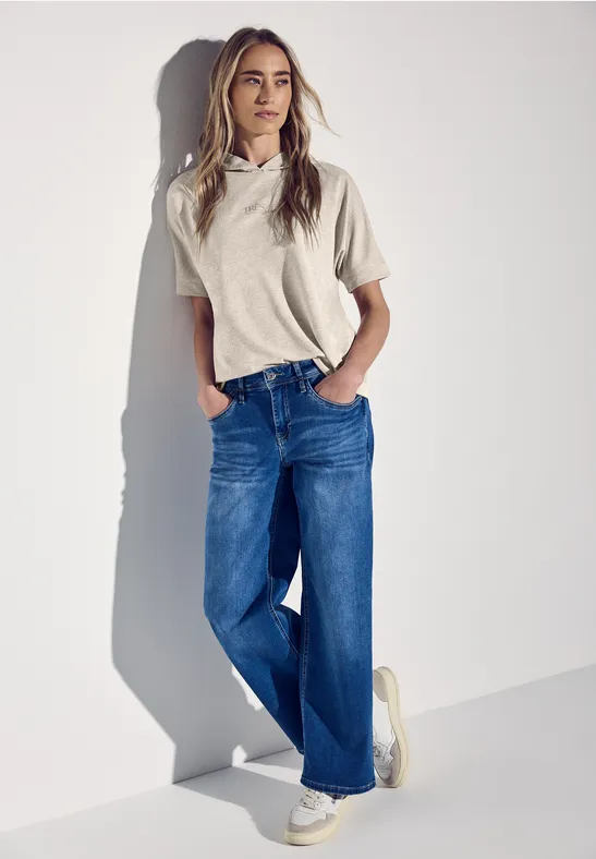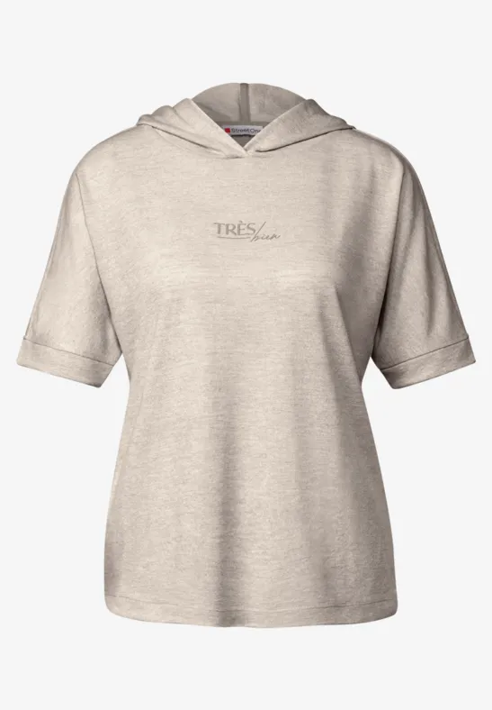 Dit Street One Shirt voor dames combineert een sportieve hooded look met een trendy tekstprint. De aangename mix van materialen zorgt voor een hoog draagcomfort. Perfect voor ontspannen casual outfits.