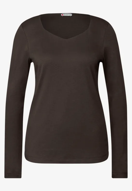 Street One Dames Shirt met carrée halslijn in Bruin, in size: 44