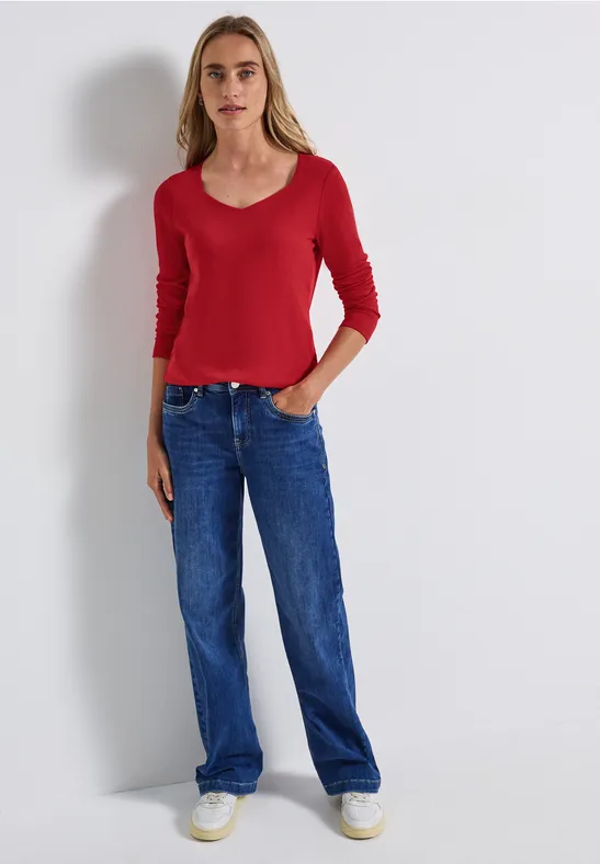 Street One damesshirt, lange mouwen, structuurlook, U-boothals