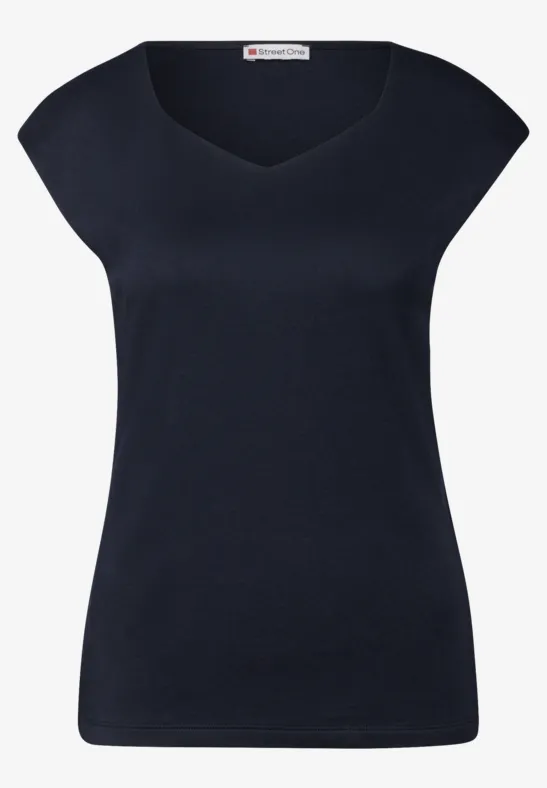 Dit Street One Shirt voor dames heeft een speciale halslijn. De gewijzigde V-halslijn voegt een elegante touch toe, terwijl de dubbellaagse voorkant een ondoorzichtige kwaliteit biedt. De zachte katoen-modaalmix maakt het bijzonder comfortabel om te dragen.