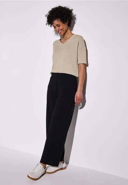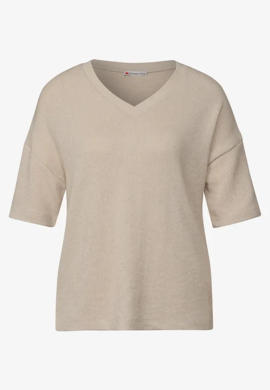 Dit Street One Shirt voor dames heeft een vrouwelijke V-hals en zijsplitten bij de zoom. De zachte viscosemix maakt het een perfecte basic voor modieuze outfits.