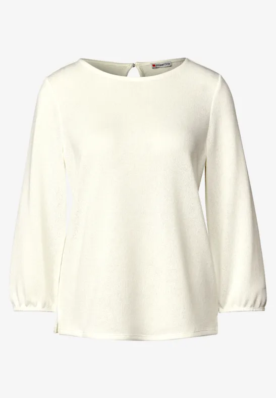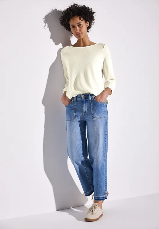 Dit Street One Shirt voor dames heeft een gebreide look met een bateauhals en 3/4-mouwen. De zijsplitten in de zoom en de comfortabele materiaalmix maken het perfect voor ontspannen outfits.
