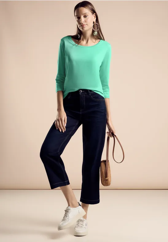 Street One damesshirt met ronde hals, T-shirt met 3/4 mouwen, Ronde hals, Katoen-modalmix, Comfortabel om te dragen, Comfortabel in het dagelijks leven
