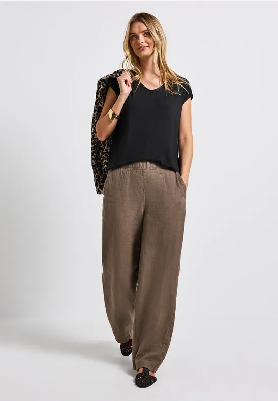 Dit Shirt van Street One voor dames is gemaakt van een zachte viscosemix met stretch. De V-hals en afgezakte schouders zorgen voor een ontspannen look, terwijl de Stretch zoom een vrouwelijk silhouet creëert. Een veelzijdig Shirt voor dagelijks gebruik en vrije tijd.