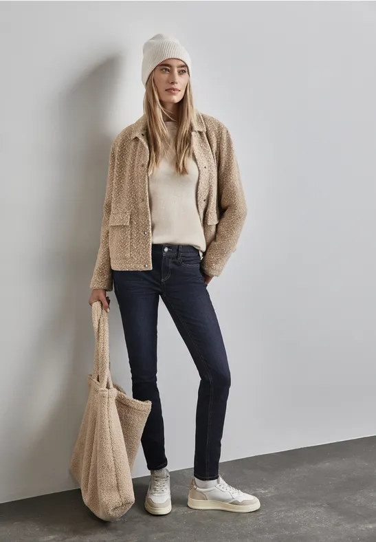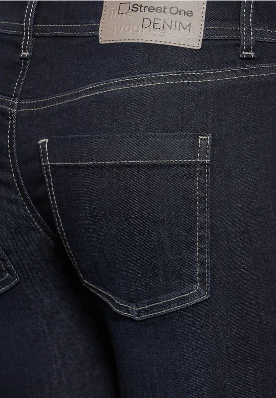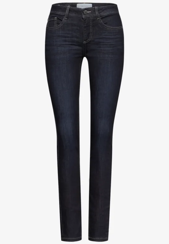 Street One damesjeans slim fit, jeansbroek, middellange taille met slanke pijp, knoop- en ritssluiting, 5-pocket, katoenmix met stretchgehalte