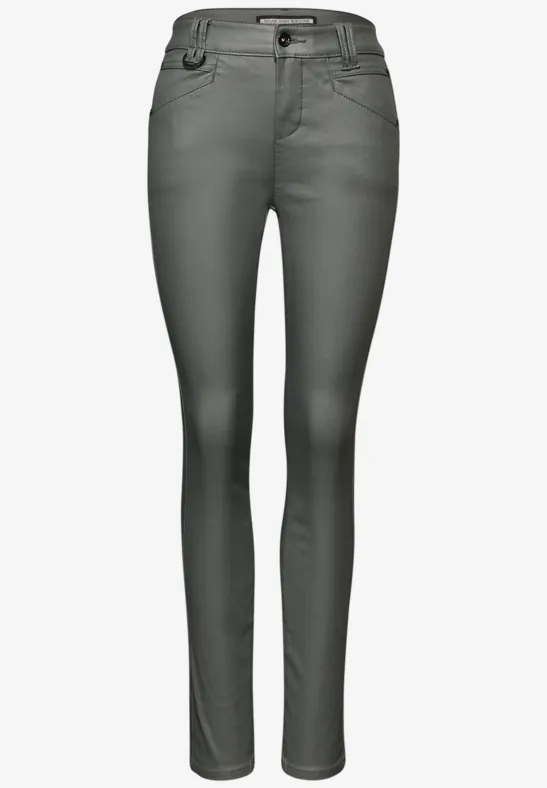 De gecoate broek York van Street One voor dames maakt indruk met zijn slanke pasvorm. De Mid Waist en Slim Legs zorgen voor een aansluitend silhouet, terwijl de materiaalmix met stretch een hoog draagcomfort garandeert.