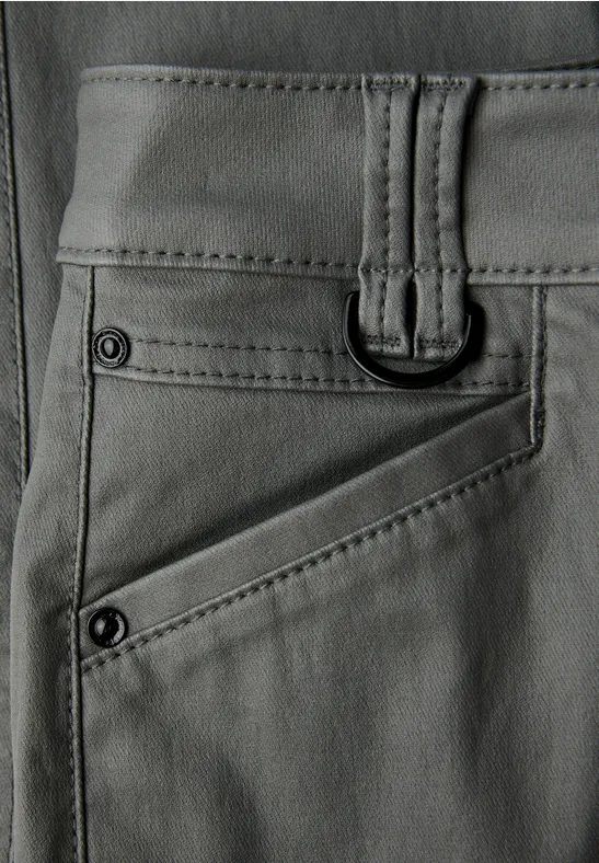 Street One Dames Slim Fit gecoate broek in Groen, in size: 40
