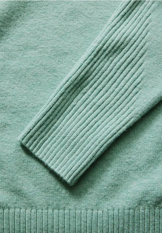De gestructureerde gemêleerde trui van Street One voor dames combineert geribde gebreide elementen met een knusse opstaande kraag. De aangename mix van materialen zorgt voor een hoog draagcomfort en maakt het een stijlvolle metgezel voor koude dagen.
