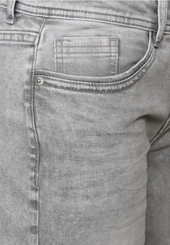 Deze Straight Legs jeans van Street One voor dames heeft een casual pasvorm met een Mid Waist en een modieus omgeslagen detail. De lichtgrijze wassing geeft de jeans een moderne look die op verschillende manieren gecombineerd kan worden. De katoenmix met stretch zorgt voor een comfortabel gevoel - perfect voor ontspannen alledaagse stijlen.