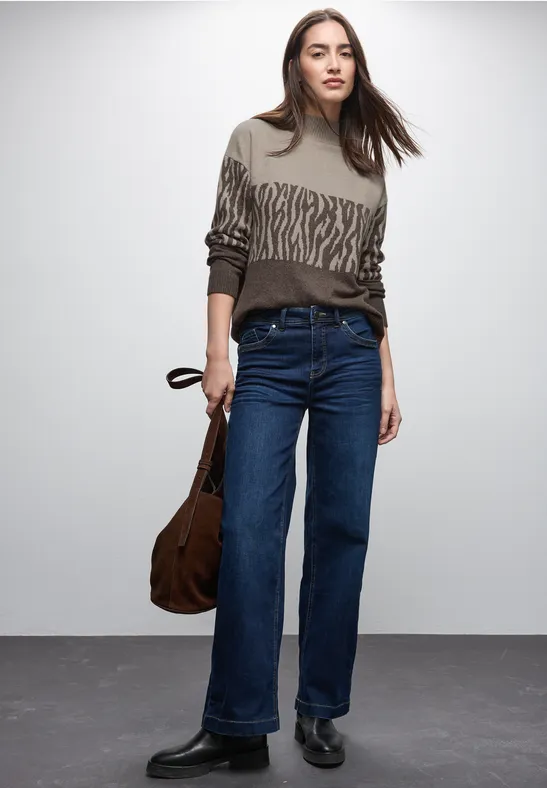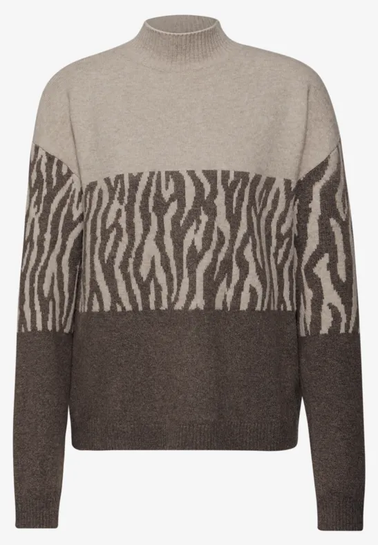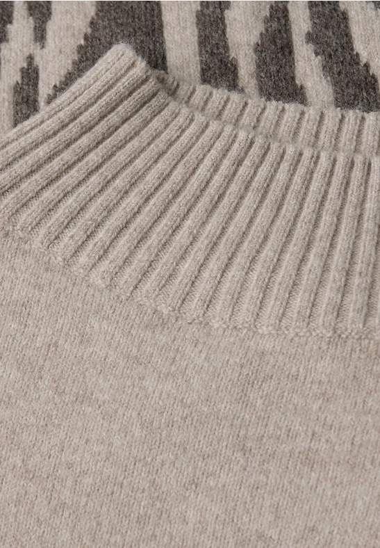 Met zijn opvallende colour-block jacquardpatroon zal deze gebreide trui van Street One voor dames de aandacht trekken. De col en stretchy katoenmix zorgen voor comfort en een modern silhouet. Ideaal voor zelfverzekerde stijlen met een modieuze twist.