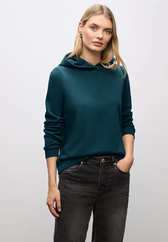 Het Street One sweatshirt met capuchon voor dames combineert comfort met een casual stijl. De behaaglijke Sweat, zachte manchetten en ontspannen pasvorm maken het de ideale feelgood-trui. Perfect voor ontspannen looks thuis of onderweg.