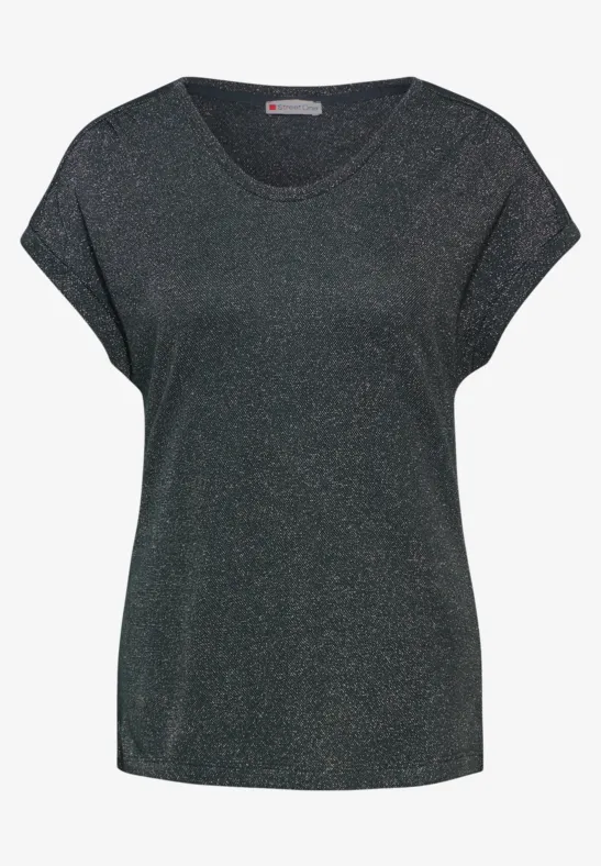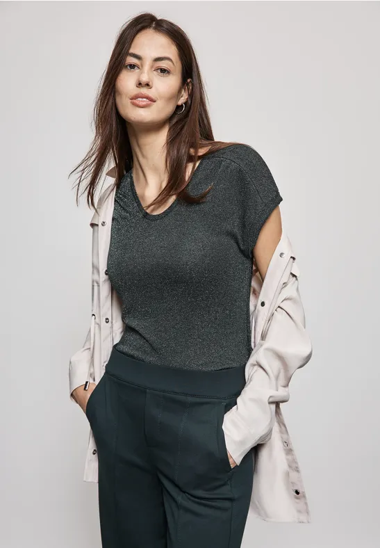 Street One dames-T-shirt in een glanzende look, Lichtgewicht shirt, Ronde V-hals, Armsgat, Glanzende look, Aangename viscosemix
