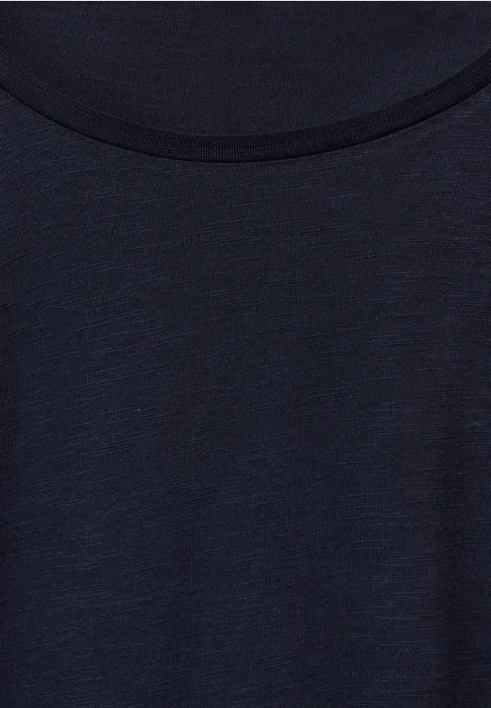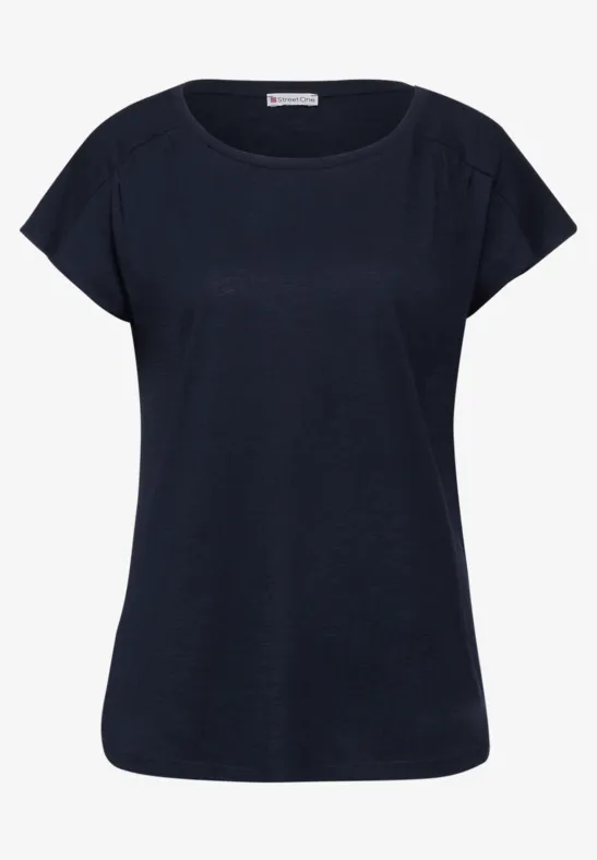 Street One dames-T-shirt met plooien, zomershirt met mouwaanzet, fijne plooitjes op de schouder, ronde hals, katoen-modalmix, zijsplitten in de zoom