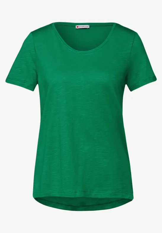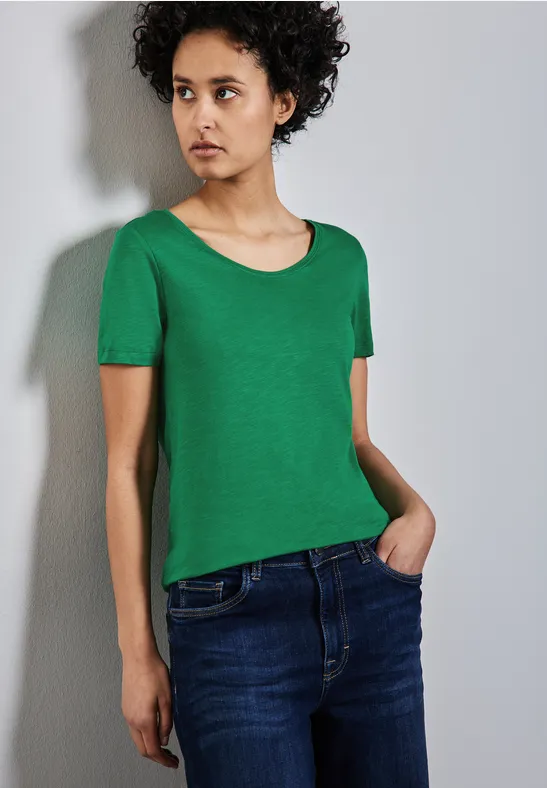 Het T-shirt Gerda van Street One voor dames combineert een vrouwelijke V-hals met een afgeronde zoom. De katoen-modaalmix zorgt voor een zacht gevoel - ideaal voor veelzijdige en comfortabele outfits.