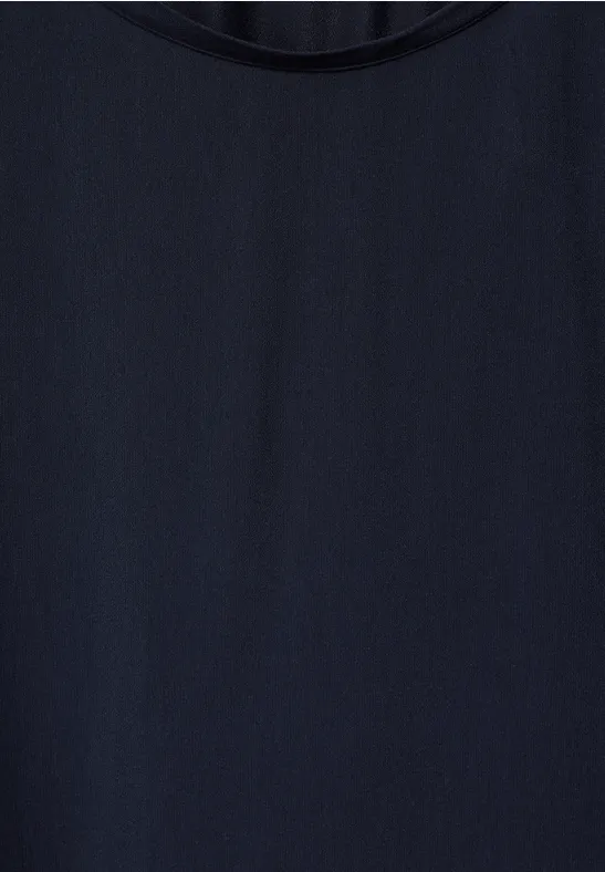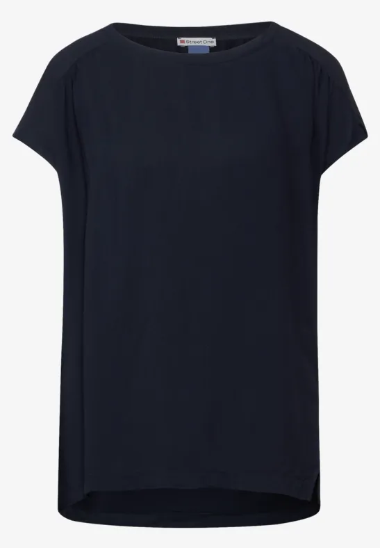 Street One dames-T-shirt, oversized schouders, materiaalmix, U-boothals