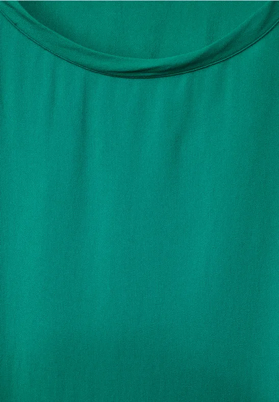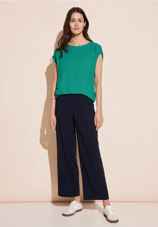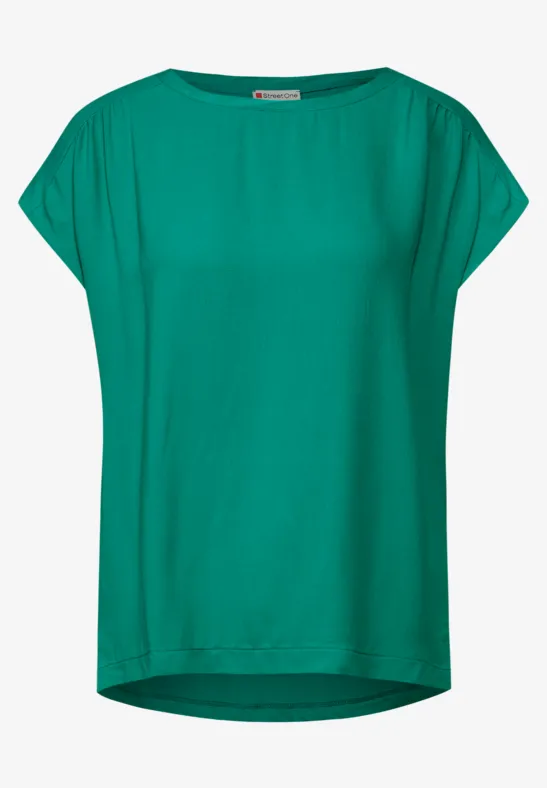 Street One dames-T-shirt, oversized schouders, materiaalmix, U-boothals