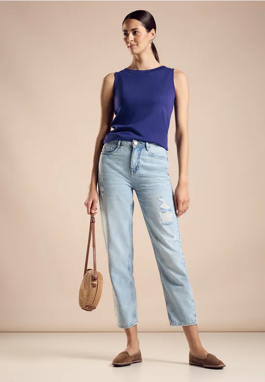 Street One damestop met banden, zomertop, U-boothals, rug met gekruiste band, katoen-modalmix