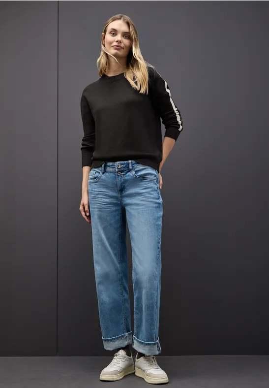 De Street One-trui voor dames combineert sportieve details met behaaglijk comfort. De galonstrepen op de mouwen zorgen voor een modieus accent, terwijl de ronde hals en de zachte stof voor een behaaglijk gevoel zorgen. Perfect voor casual alledaagse looks.