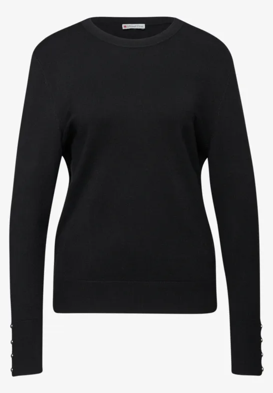 Street One Dames Trui met knoopdetail in Zwart, in size: 44