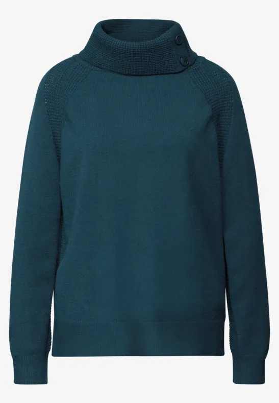 Street One Dames Trui met opstaande kraag in Turkoois, in size: 36