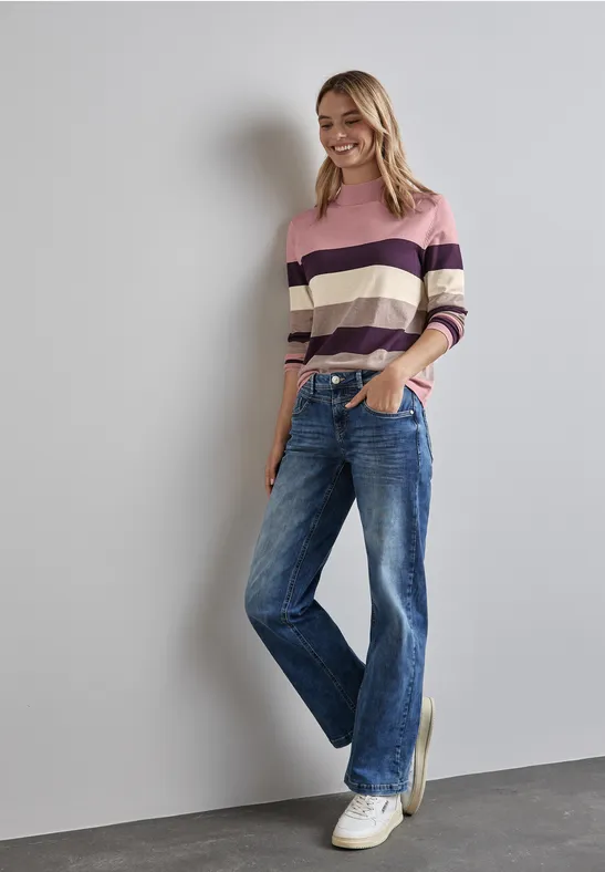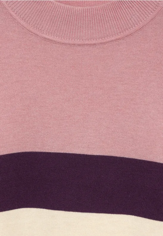 Ontdek de perfecte combinatie van stijl en comfort met deze damestrui, ontworpen met een eigentijdse blokstriping en een elegante opstaande kraag. De lange mouwen bieden extra warmte, terwijl de zachte viscosemix zorgt voor een behaaglijk gevoel, ideaal voor de frisse dagen. Deze trui is niet alleen modieus, maar ook veelzijdig; je kunt hem gemakkelijk combineren met zowel jeans als een chique rok voor een trendy look. De opvallende strepen geven een speelse twist aan je outfit, waardoor je altijd opvalt. Of je nu een casual dagje uit plant of een avondje met vrienden, deze trui is je ideale metgezel. Geef je garderobe een upgrade en geniet van het ultieme draagcomfort, ongeacht het seizoen. Voeg deze must-have toe aan je collectie en ervaar zelf de perfecte balans tussen fashion en functionaliteit.