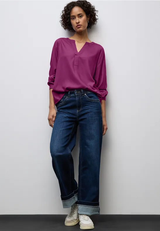 De Bamika stijl tuniek van Street One voor dames combineert vrouwelijke luchtigheid met een modern ontwerp. Zachte viscose zorgt voor een vloeiend gevoel, terwijl de gespleten hals en de lange mouwen met manchetten en knopen klassieke accenten toevoegen. Ideaal als stijlvolle allrounder voor dagelijks gebruik.