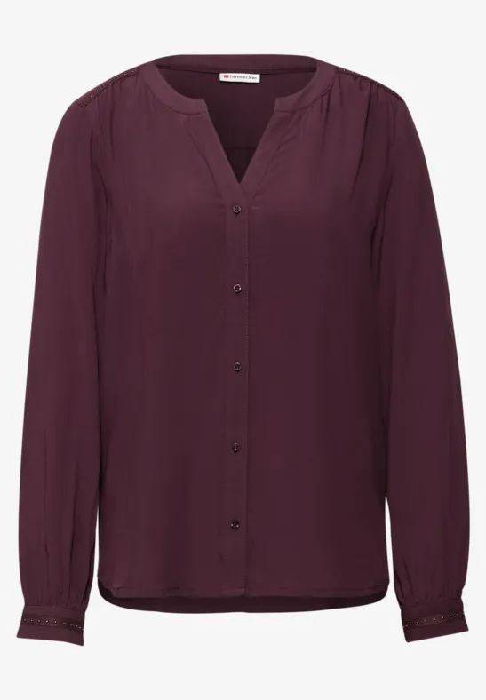 Deze Street One blouse voor dames heeft stud details, een vrouwelijke split-hals en een fijne knoopsluiting. De zachte viscosestof is comfortabel om te dragen - perfect voor casual looks met modieuze verfijning.