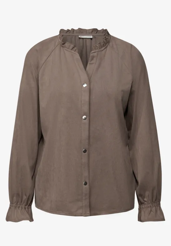 Deze velours tuniek van Street One voor dames brengt vrouwelijke elegantie in je dagelijkse leven. De ruches en gespleten hals zorgen voor een speelse touch, terwijl de zachte veloursstof bijzonder comfortabel is om te dragen. De knoopsluiting voegt een klassiek element toe aan de look.