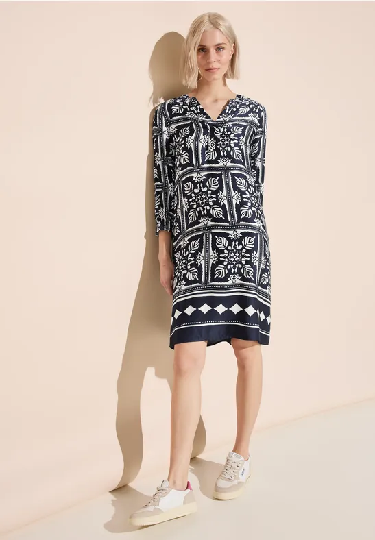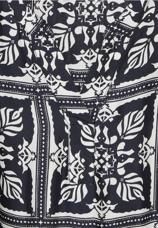 Ontdek de perfecte combinatie van stijl en comfort met deze elegante tuniekjurk voor dames. Gemaakt van zachte viscose, biedt deze jurk een aangenaam draaggevoel gedurende de hele dag. De lange mouwen zijn voorzien van stijlvolle manchetten, die een verfijnde uitstraling geven, terwijl de ronde hals met split een vleugje flair toevoegt. Praktische steekzakken aan de zijkanten maken deze jurk niet alleen chic, maar ook functioneel. Het grafische patroon voegt een moderne toets toe, waardoor je moeiteloos kunt schitteren bij elke gelegenheid. Of je nu een casual dagje uit hebt of een speciale gelegenheid bijwoont, deze tuniekjurk is de ideale keuze voor een trendy en comfortabele look. Laat je garderobe stralen met deze veelzijdige jurk die zich gemakkelijk laat combineren met zowel sneakers als netjes schoeisel.