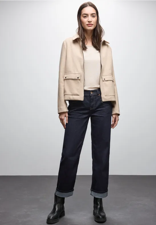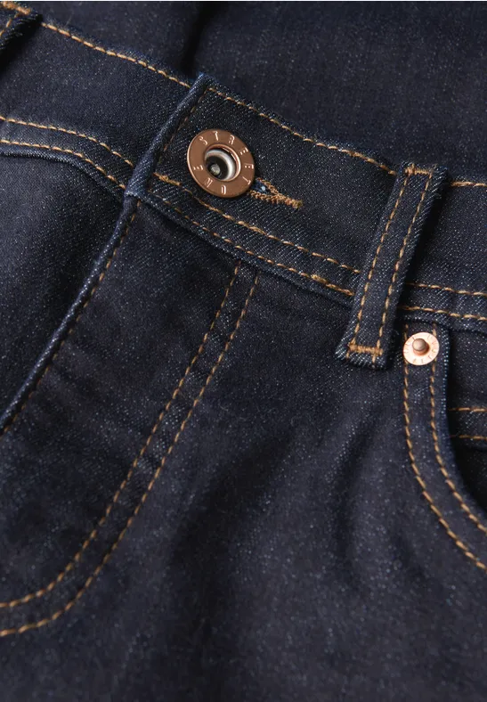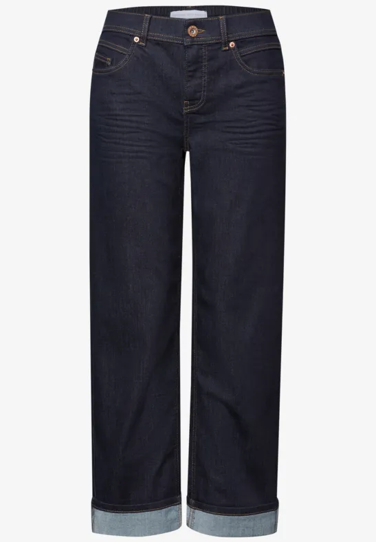 Deze Straight Legs jeans van Street One voor dames heeft een clean rinsed look met een klassiek silhouet en een subtiele casual pasvorm. De elastische tailleband aan de achterkant zorgt voor een comfortabele pasvorm, terwijl het stretchgehalte in de katoenmix bewegingsvrijheid garandeert. Ideaal voor slimme alledaagse outfits.