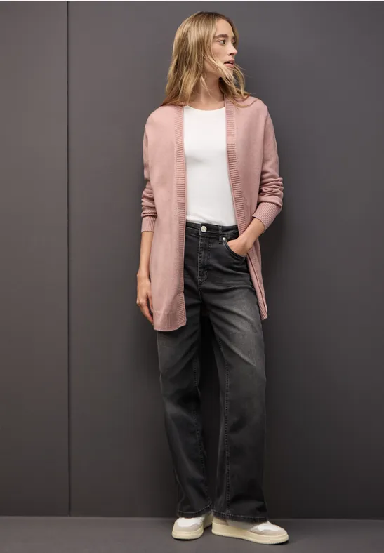 Met fijne details zoals de opgerolde rand brengt dit vest van Street One voor dames stijlvolle luchtigheid in je look. De lange, open vorm zorgt voor een vloeiend gevoel, dat wordt aangevuld door de zachte stof. Ideaal voor knusse outfits op frisse dagen.