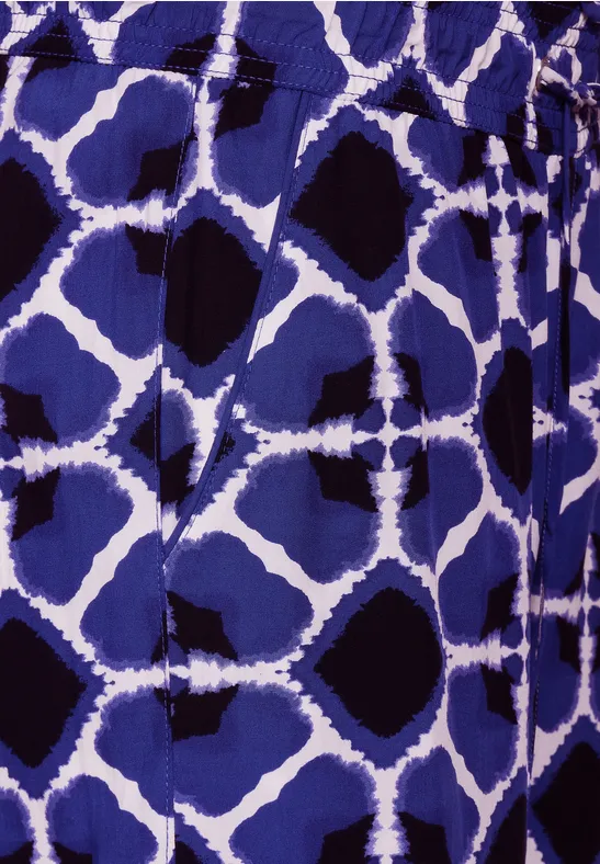 Street One viscose damesbroek met print, zomerbroek in loose fit, hoge taille met wijde pijpen, elastische taille en trekkoord, steekzakken, grafisch patroon